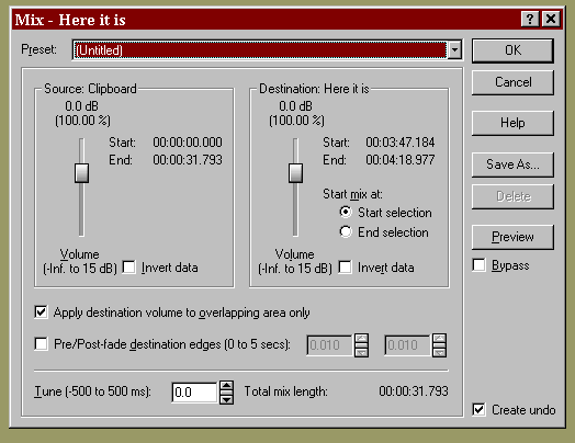 and change the volume settings to suit yourself. Click Cancel if the mix